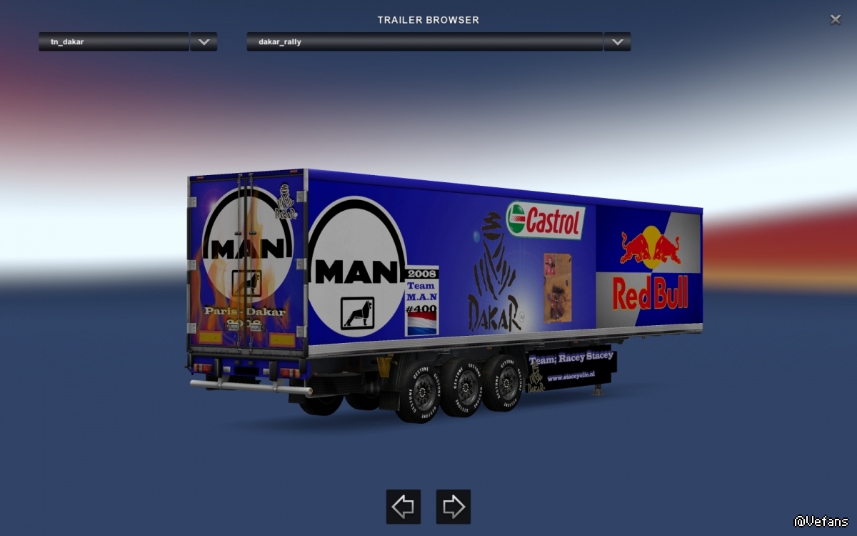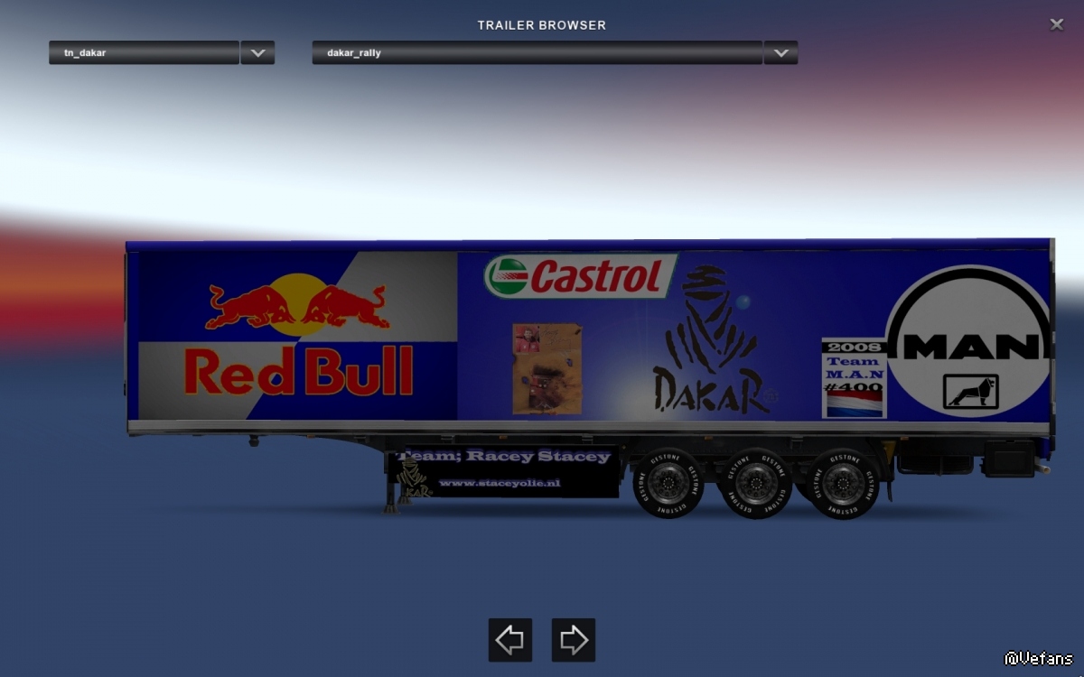 2008年,来自荷兰的Hans Stacey赢得巴黎达喀尔拉力赛。那个时候我做了一个预告片。双方的海报有自定义刻录标记。达喀尔贴花在拖车上的几个地方。后面的火焰是定制的。我知道红牛从来没有成为球队的赞助商,但它看起来很酷,所以我反正做了。