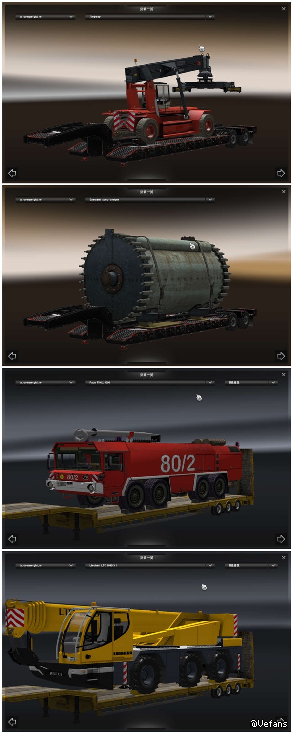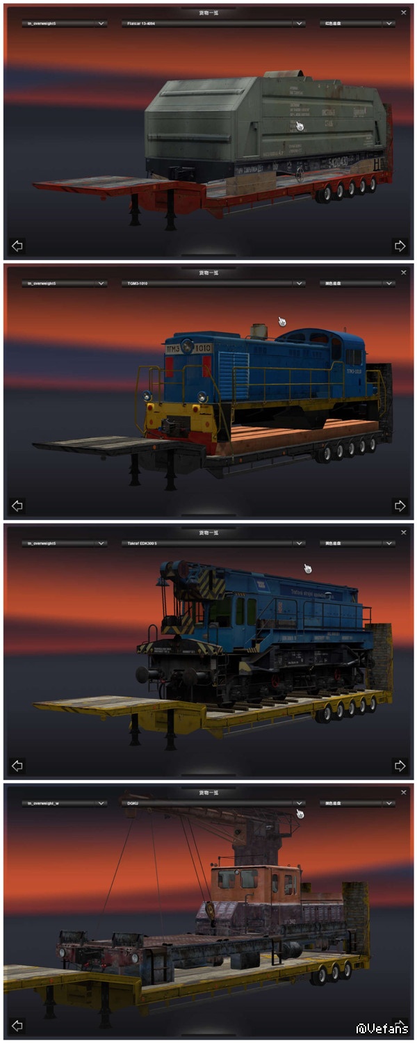 MOD分:车头.皮肤.货柜.地图.轮胎轮毂.其他附件类,共6类)