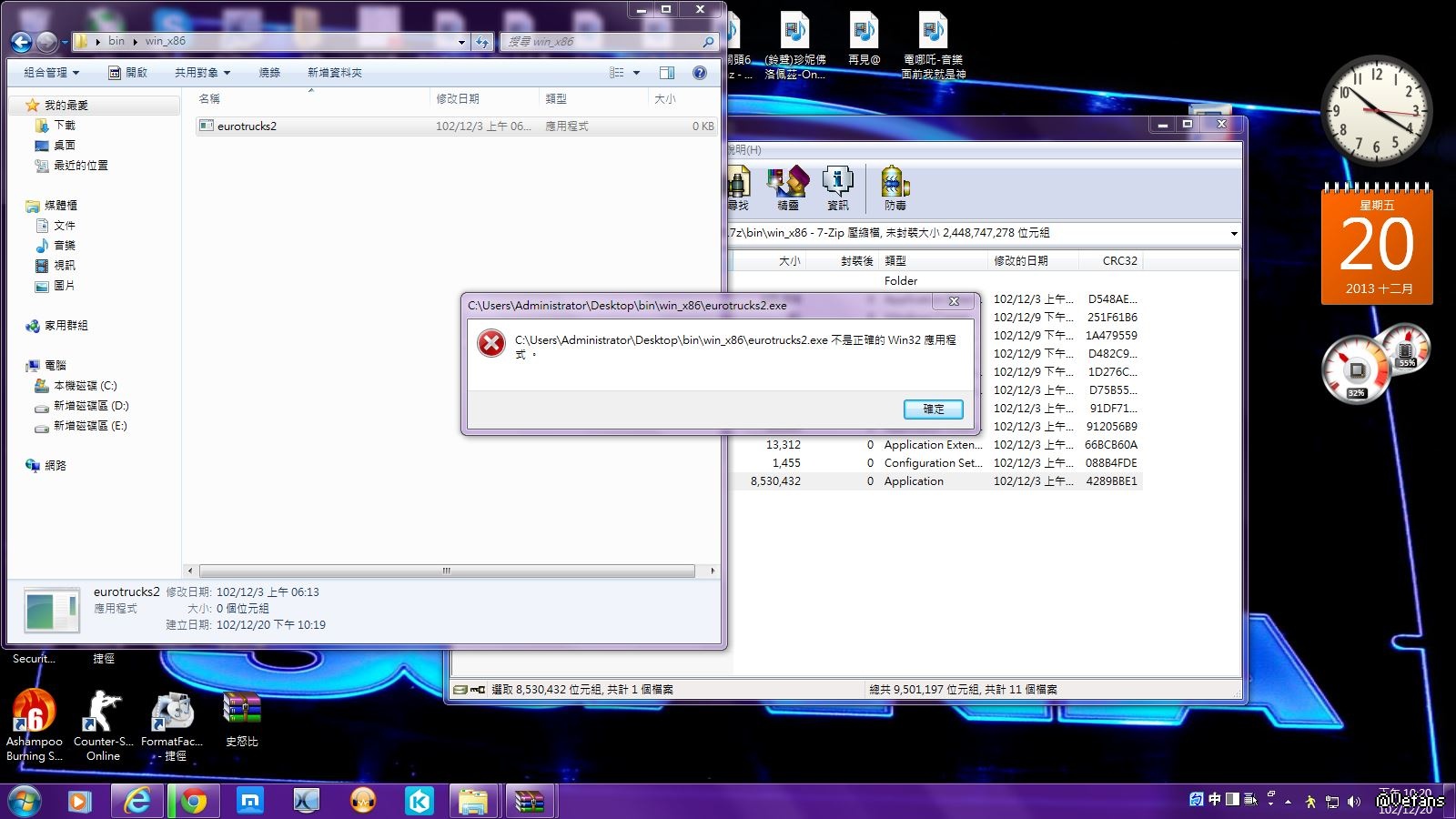 bin的資料夾裡面有一個x86資料夾!!x86資料夾一打開裡面有一個eurotruck2.exe!!