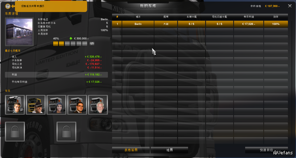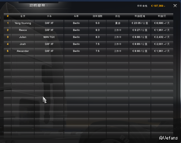 楼主有四名司机且配有卡车,并且四名司机等级最低的是6.5,可以帮玩家快速脱贫。
