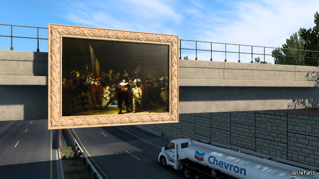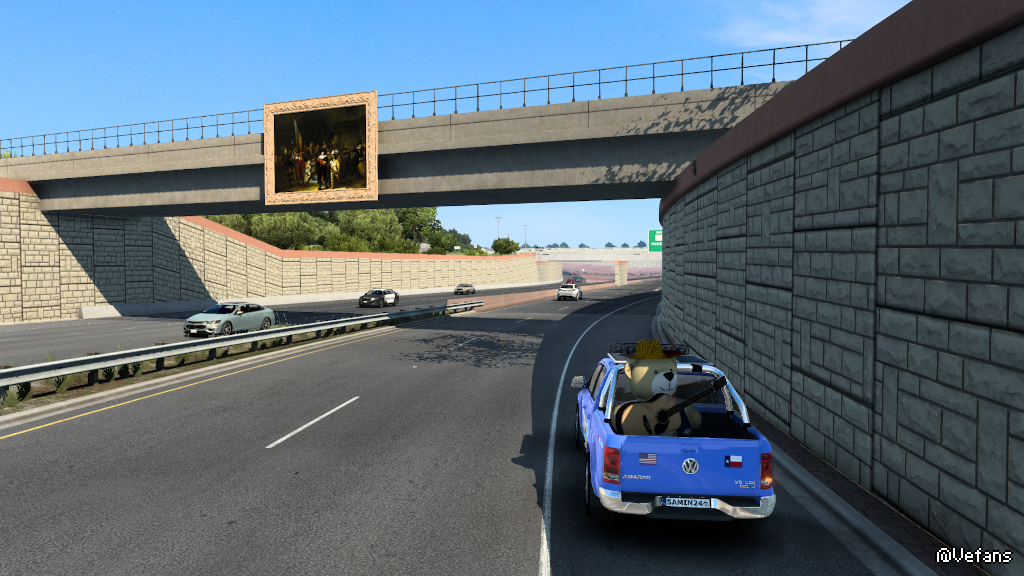 美化市容!阿銘在德州 拉雷多老家贊助環境佈置,先設置超大型動漫像,再於橋樑擺上名畫!