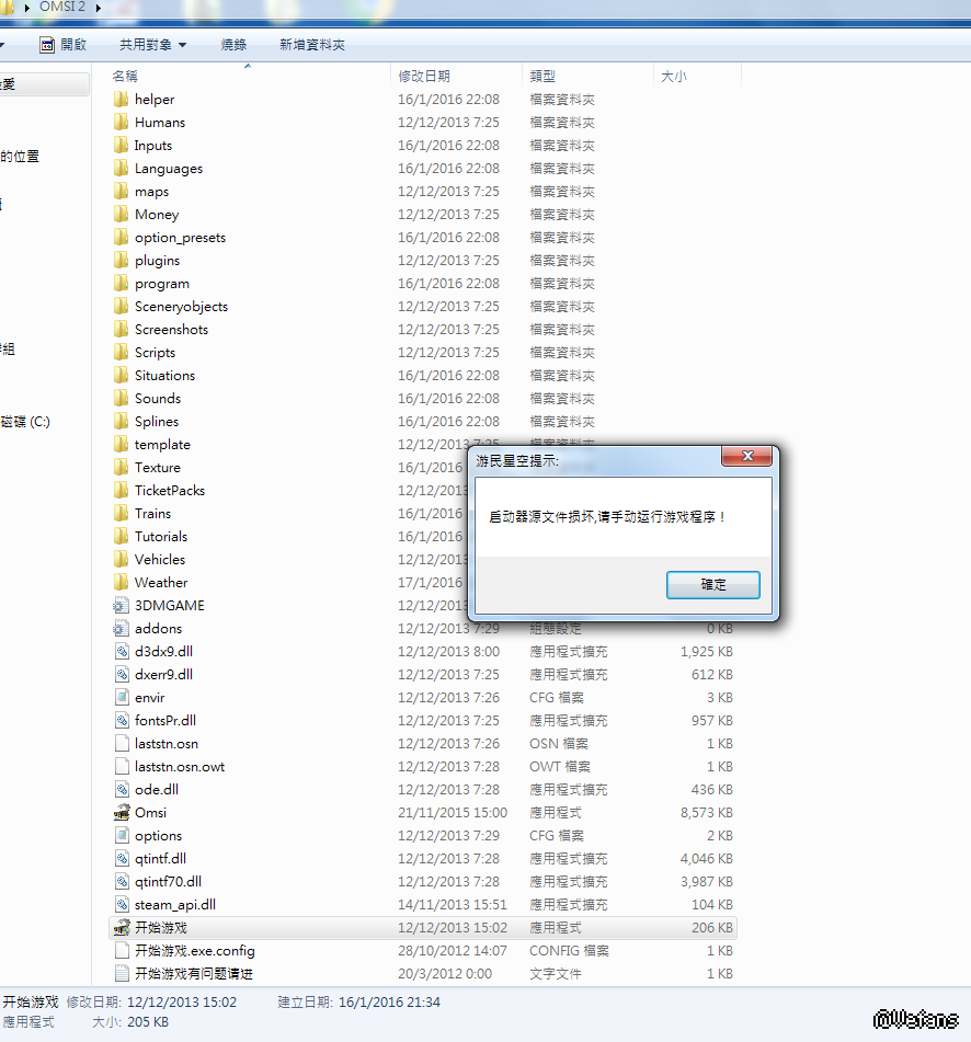 不要使用这个“开始游戏”进入游戏,请一定要使用omsi.exe进入游戏
