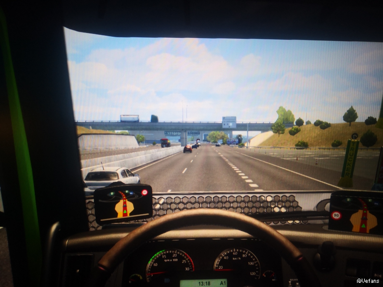 如图地点,此地点和再往前开同样这个样子的一个路段,走主路会有空气墙,走旁边的应急车道会过去。