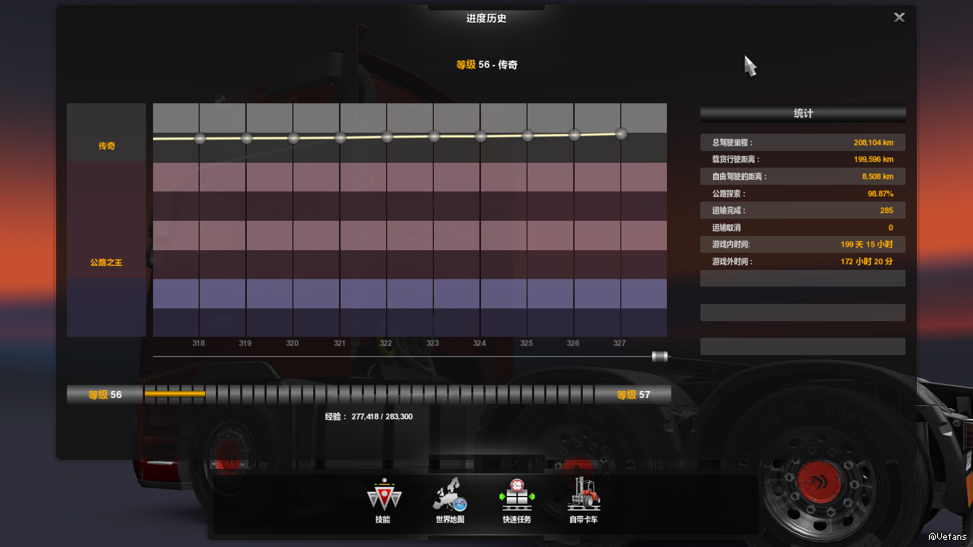 前14万公里几乎是斯堪尼亚运输,用鼠标加键盘操作,现在基本上只开沃尔沃FH16Classic,因为驾驶室看起来像豪华轿车一样,稳的感觉,另外一个关键的是发动机声音好听,不刺耳,用Xbox360手柄控制。