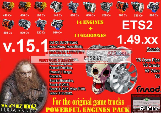 Changes in the Powerful Engines & Gearboxes Pack v.15 for ETS2 1.49.xx: