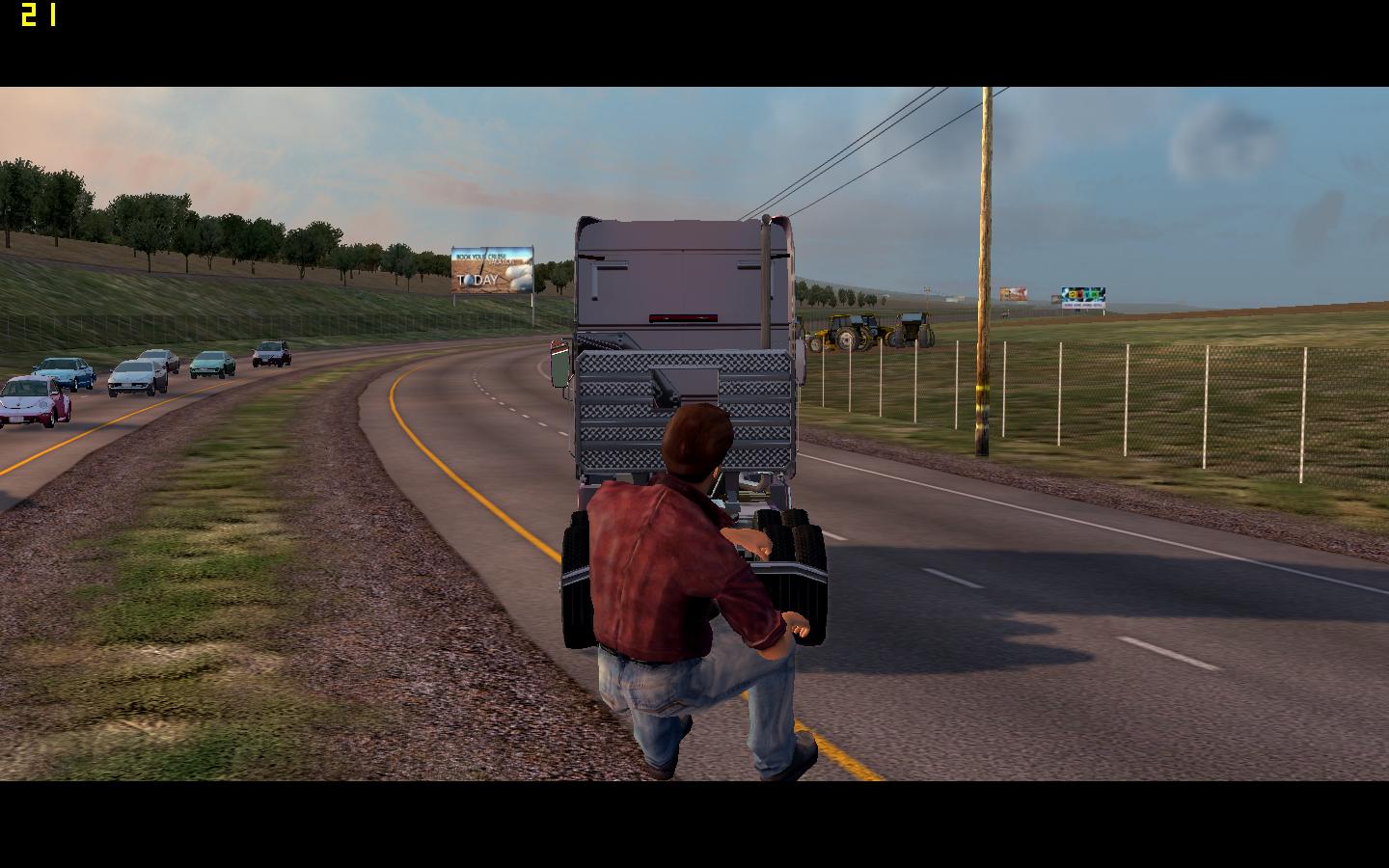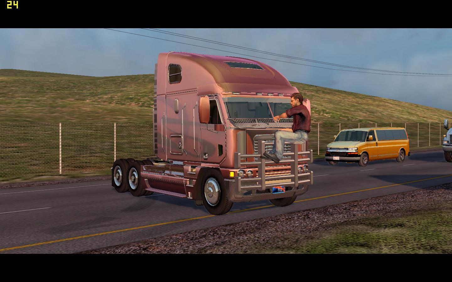 开到这里,上方任务栏没有了,画面变成了电影效果,车子仍然可以控制