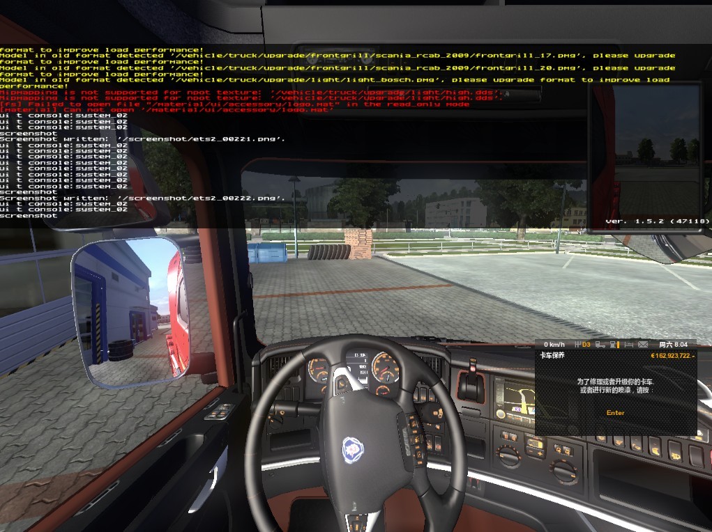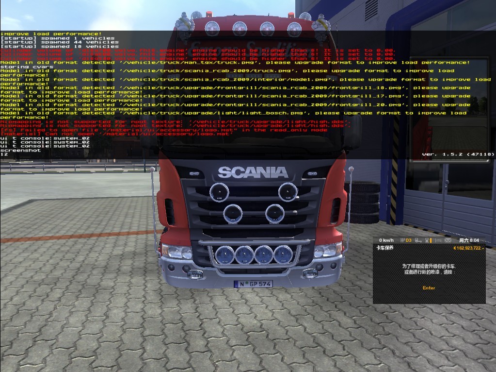 这是欧洲卡车模拟2截图,我是按了~键,出现了很吃惊的东西,以下为图(按的是大键盘上的数字键“1”前面的)
