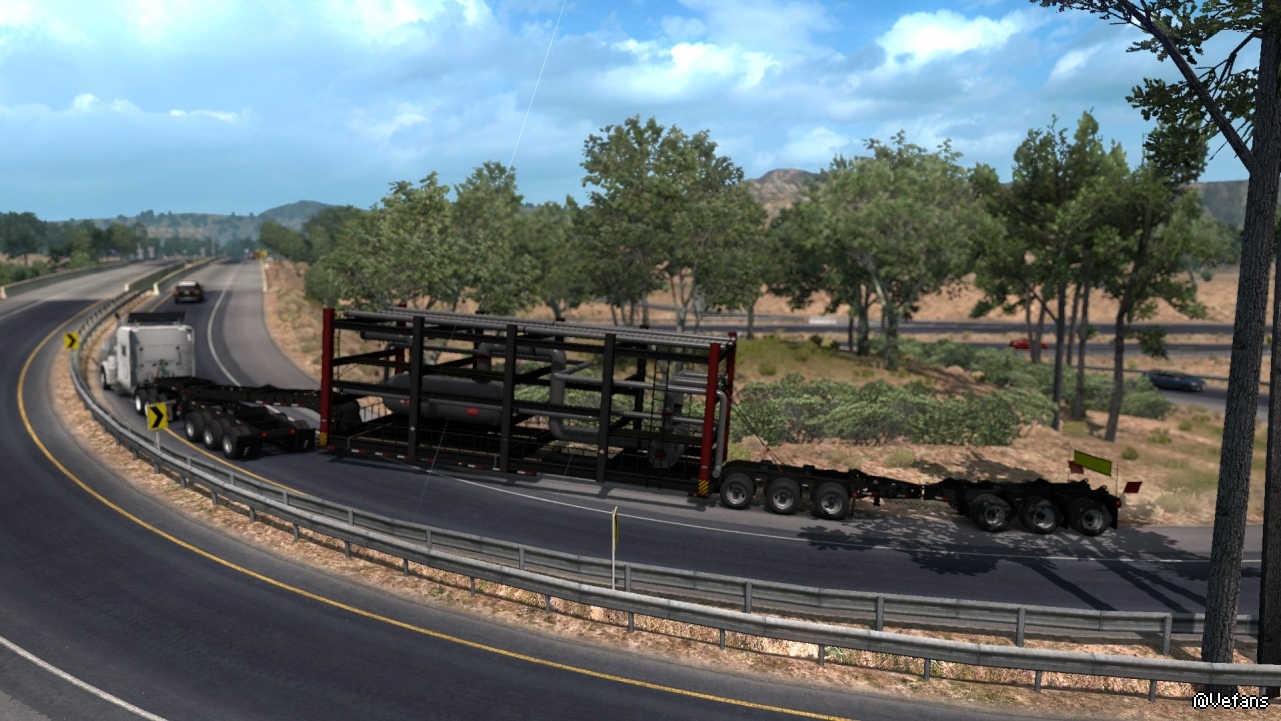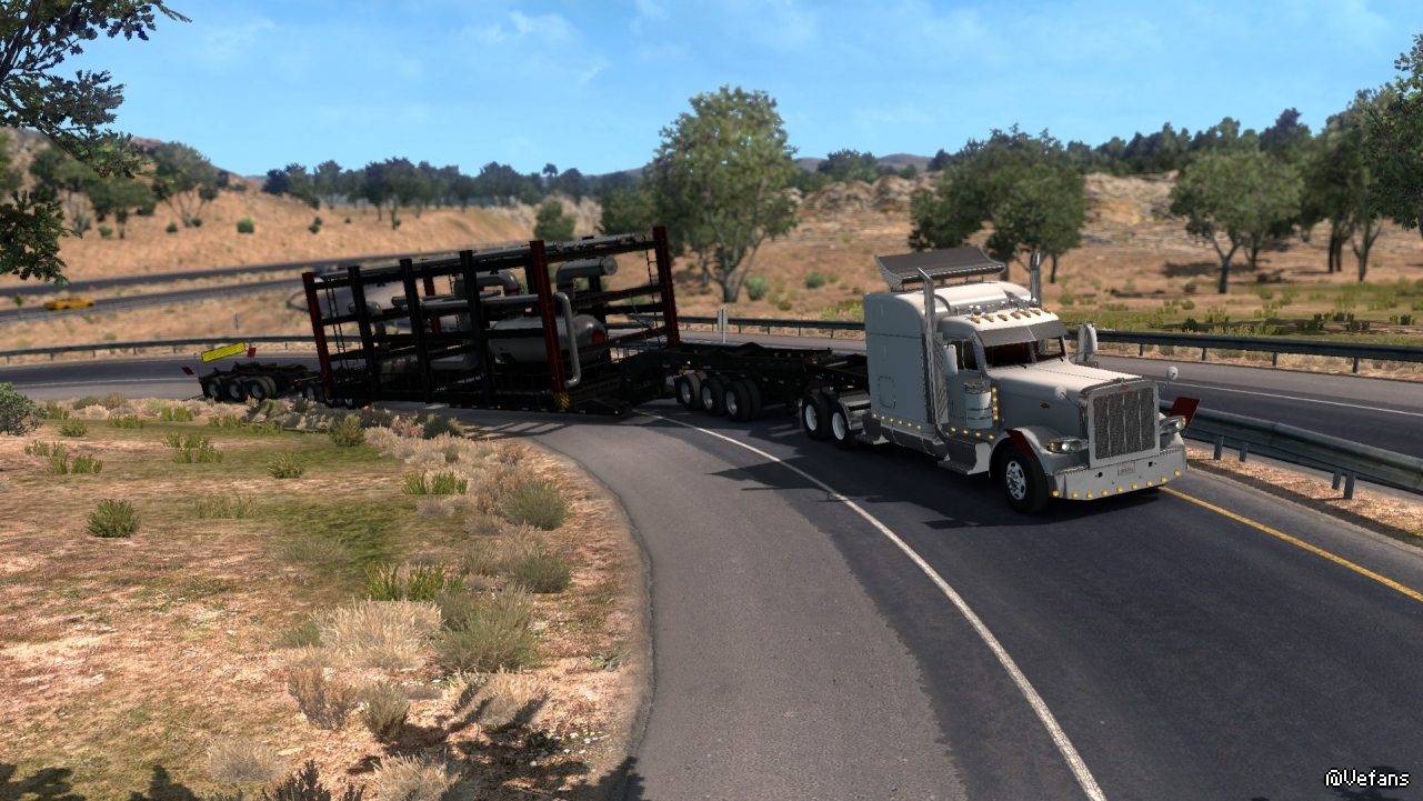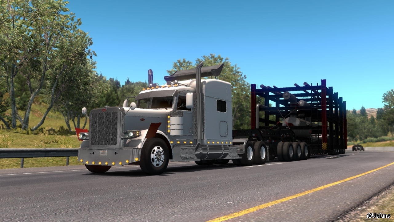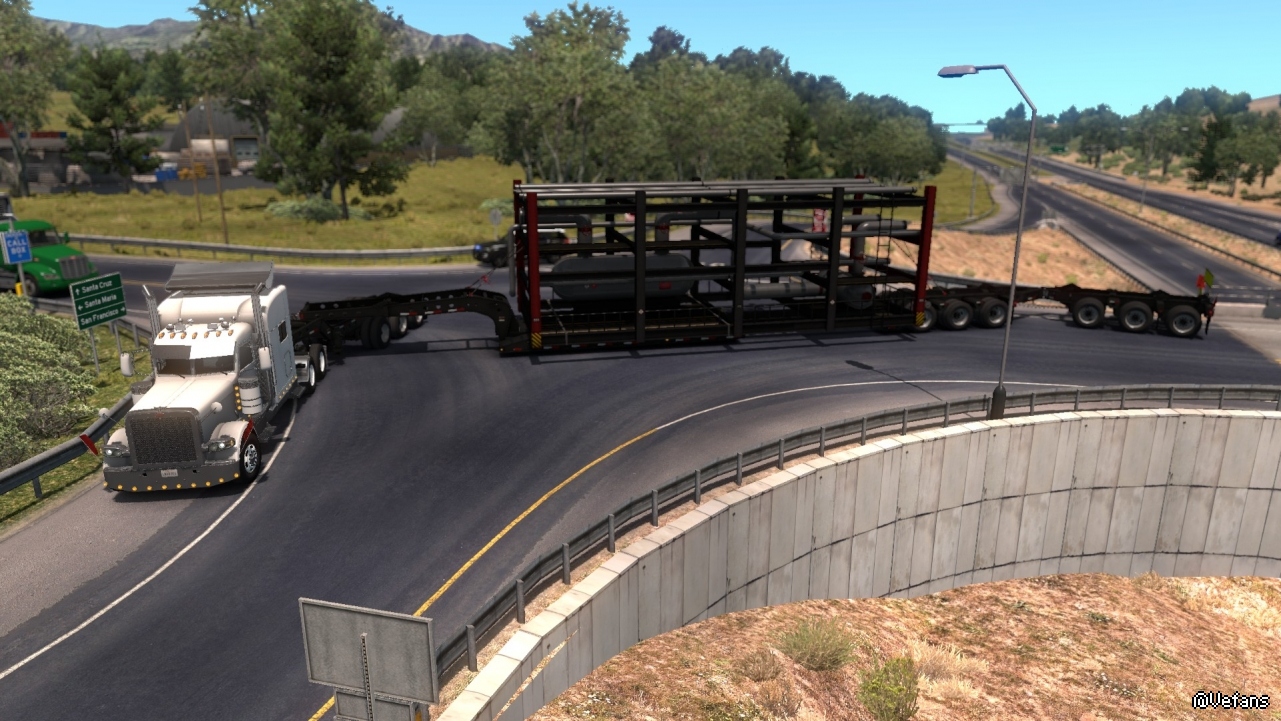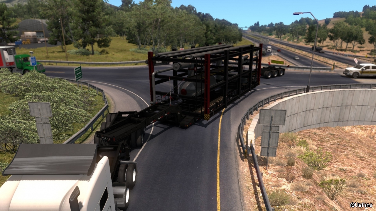 美國卡車的特點就是長。這個貨物要是放在歐洲,可能衹需要一半的長度即可。