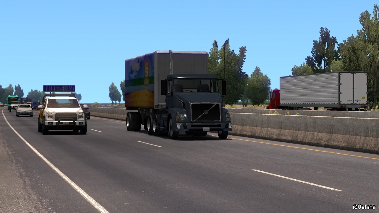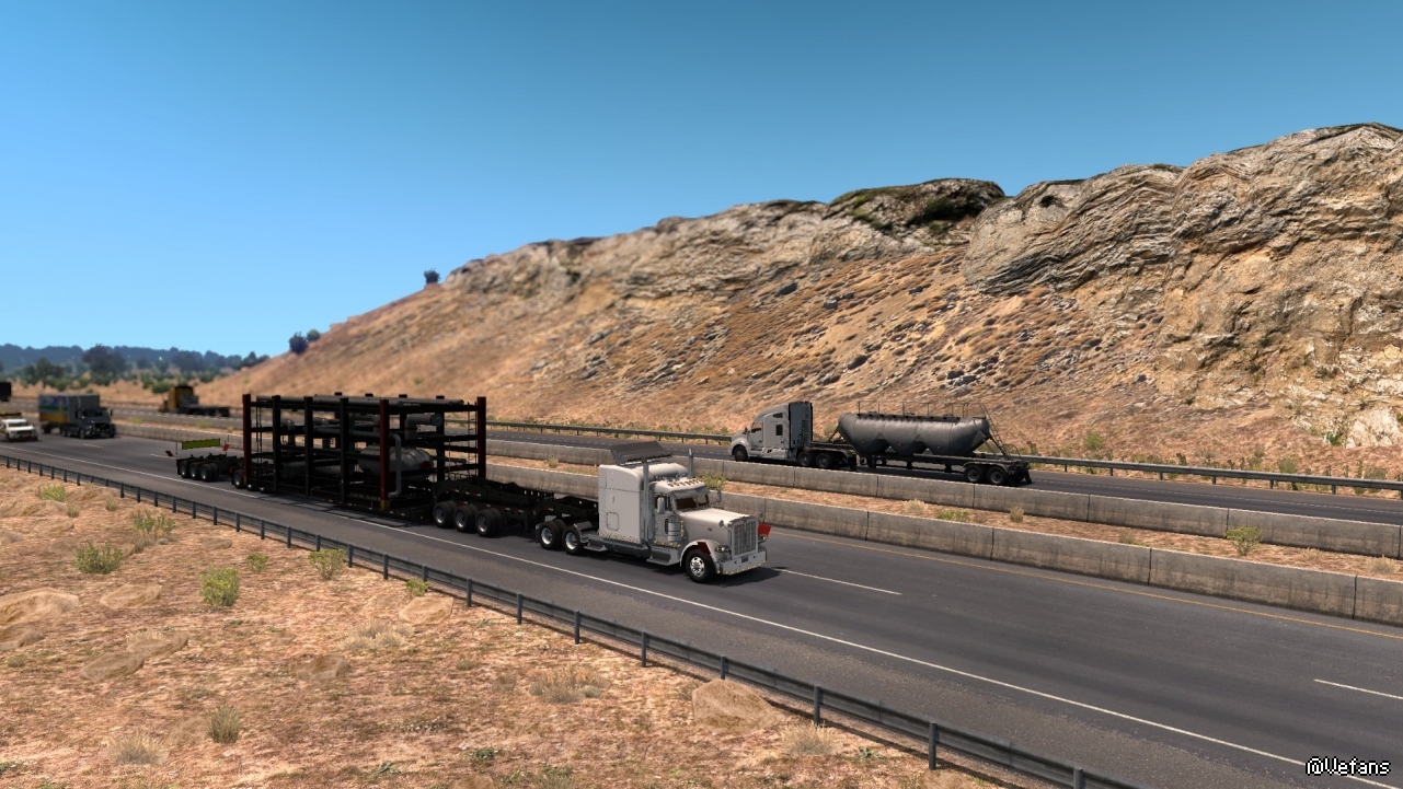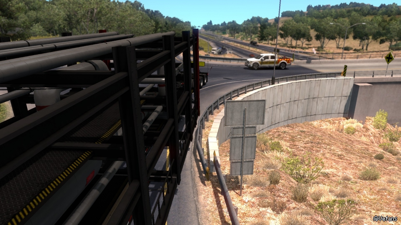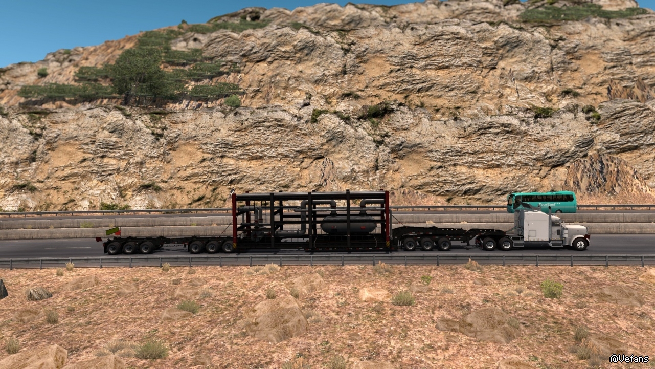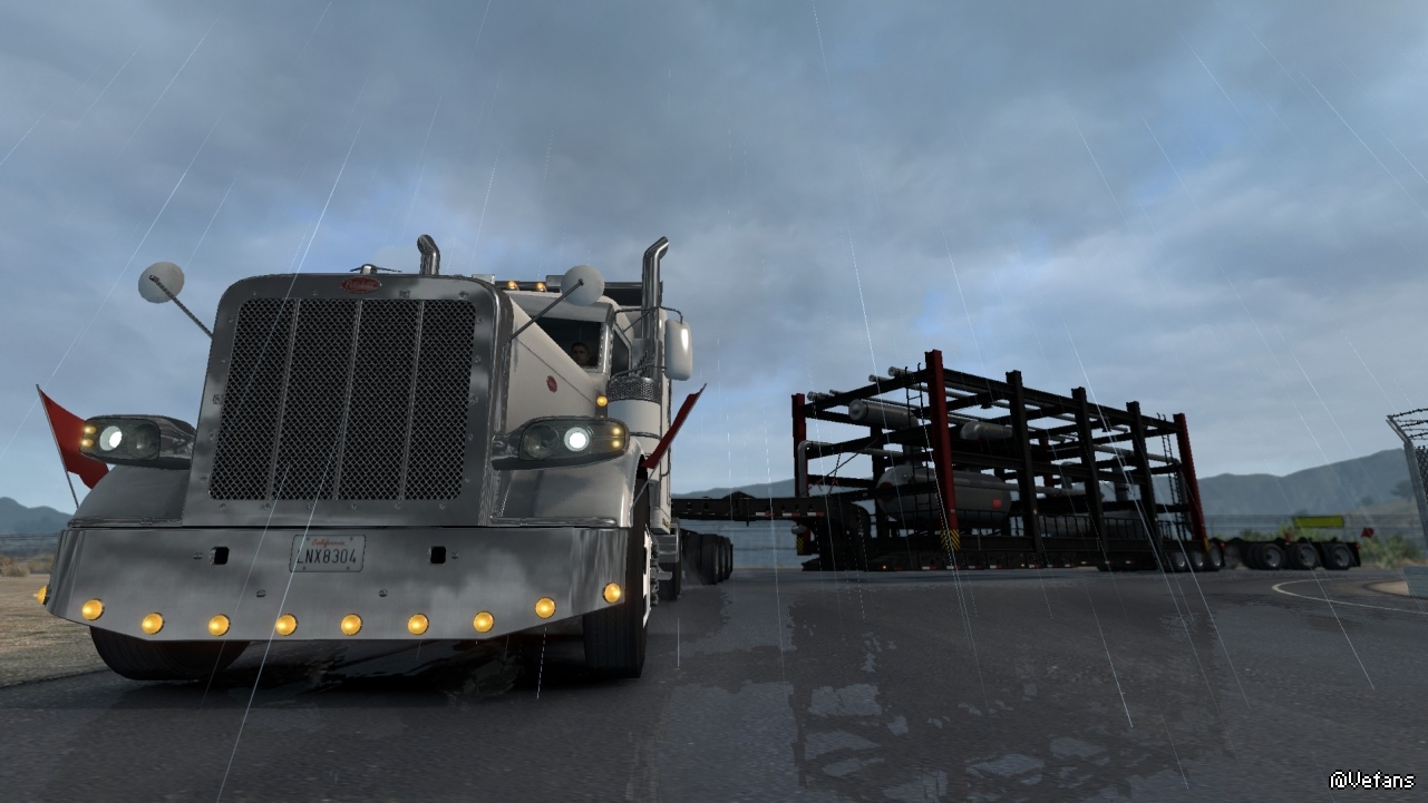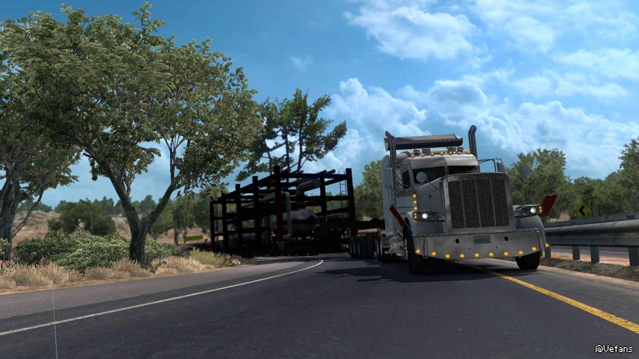 美國卡車的特點就是長。這個貨物要是放在歐洲,可能衹需要一半的長度即可。