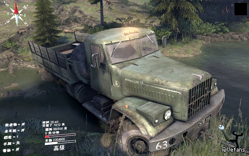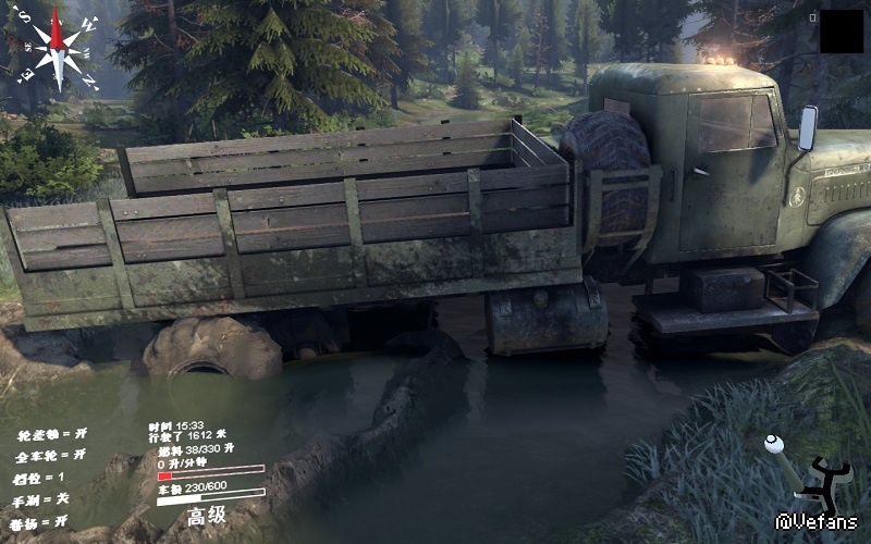 这个我遇到过!当时开C-4320型号拉中原木陷车后开8X8去拉,拉上来后转向轮不见了一个