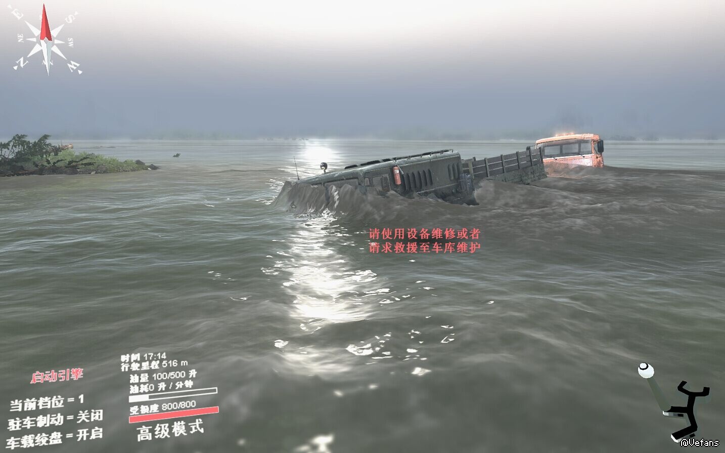两次了,都是同样位置熄火,水太深了。