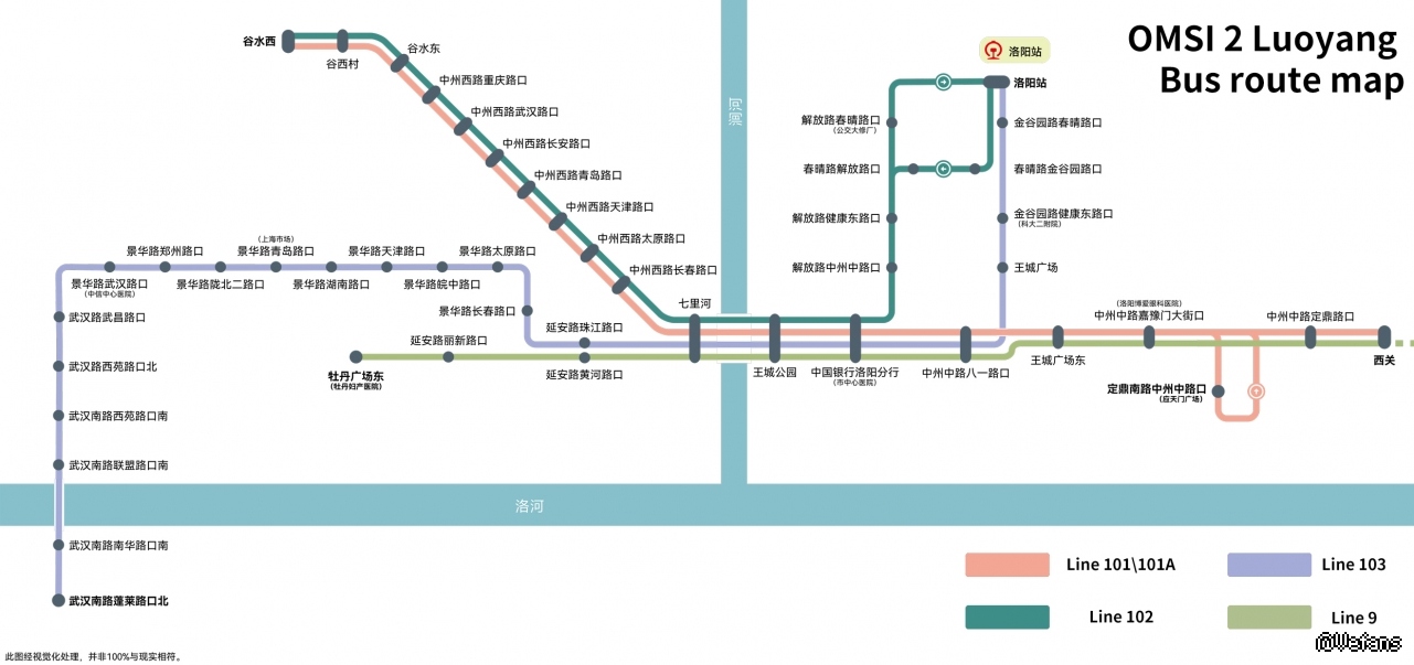 在这张地图里,你可以驾驶无轨电车穿过老城区、途径学校、百货商场、热闹的王城公园与王城广场,最终抵达火车站,不过请小心驾驶,时不时会有出现在公交车站附近的违停车辆和不守交通规则的行人,同时在这张地图里你还可以见到著名的古建筑洛阳城应天门遗址。祝游玩愉快!
