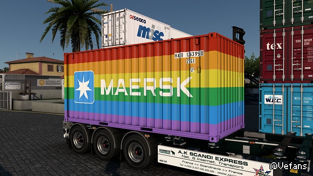 Special Thanks to : MDModder for his help with the mapping & multi-look, Julian/JUseeTV for providing the 20ft & 2x20ft & 40ft OT, 40ft HC/reefer, 45ft HC PW/reefer, 45ft chassis & Flatracks models; Ogentor for his help with the ADR plates; Prutser17 for his help with the VAK 45ft add-on and to Kast for allowing us to release it, KrysEmlyn for making and sending the AI Train Add-On, Carl1992 for all the help with codes, traffic,etc., NARS for the help with the default cargos, Niepa (<3), Tristan, Nico, Csabee and Julian for beta-testing