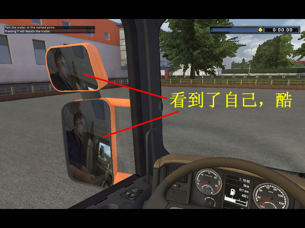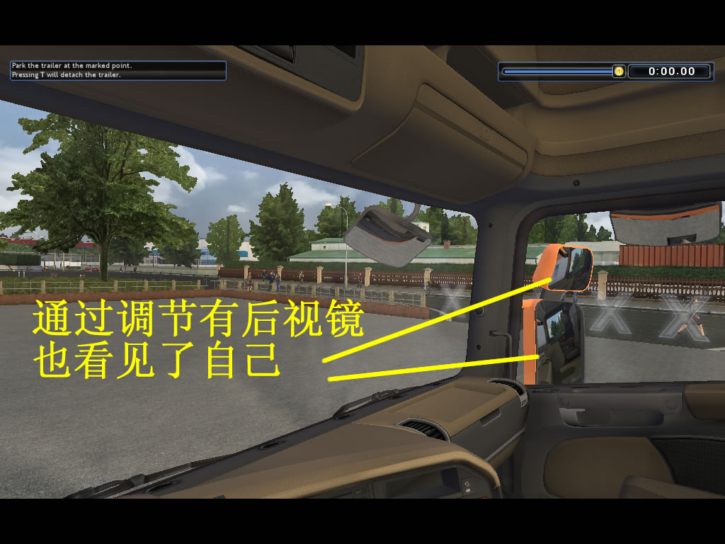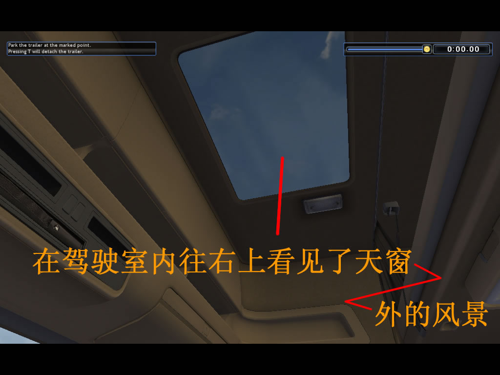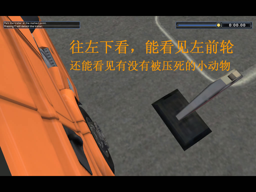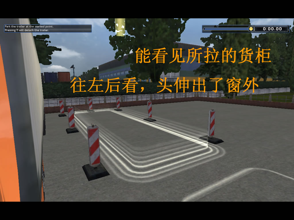 1。头能伸出左边的窗外看,能看到后面所拉的货柜,也能看到左后上方的天空状况,还能看见车头左下方的卡车前轮和路况,这是大的飞跃;