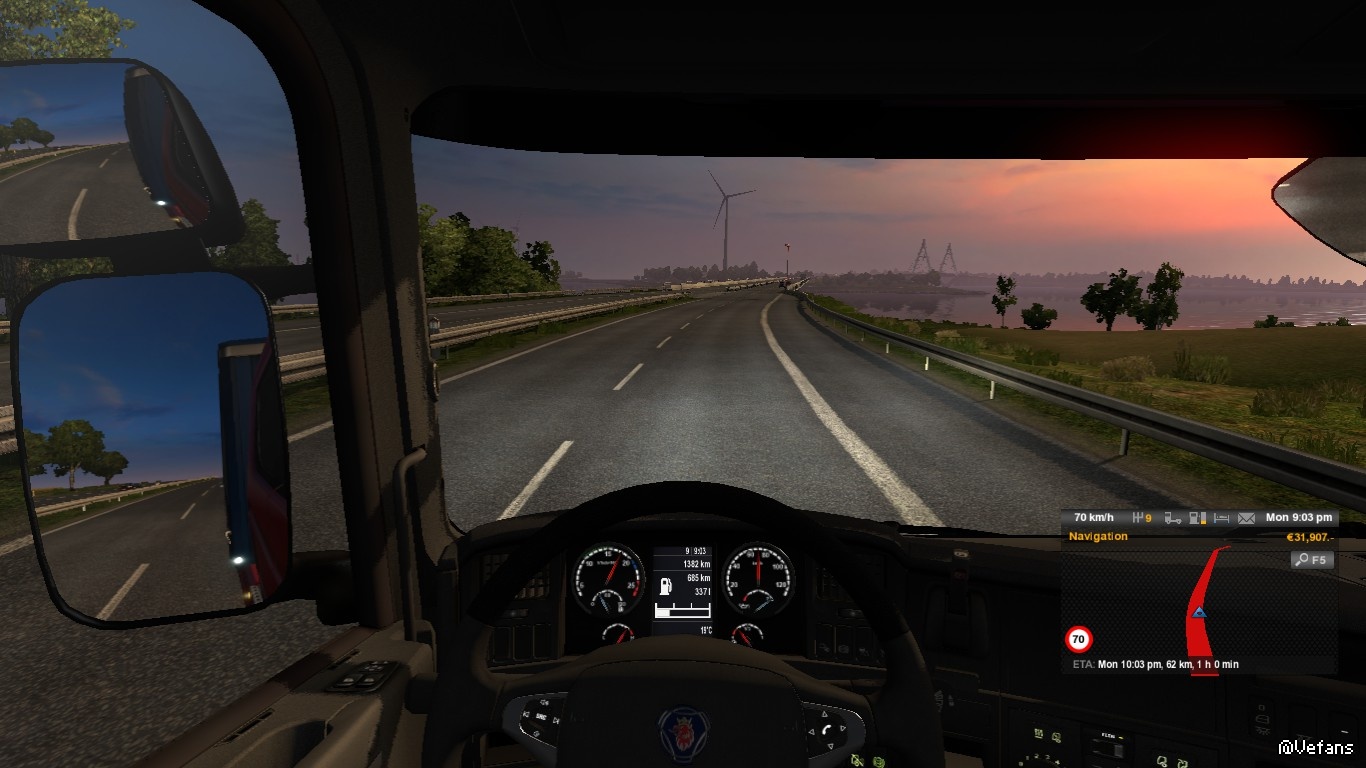 海底隧道段,由東向西,接近往哥本哈根的出口(谷歌街景服務)