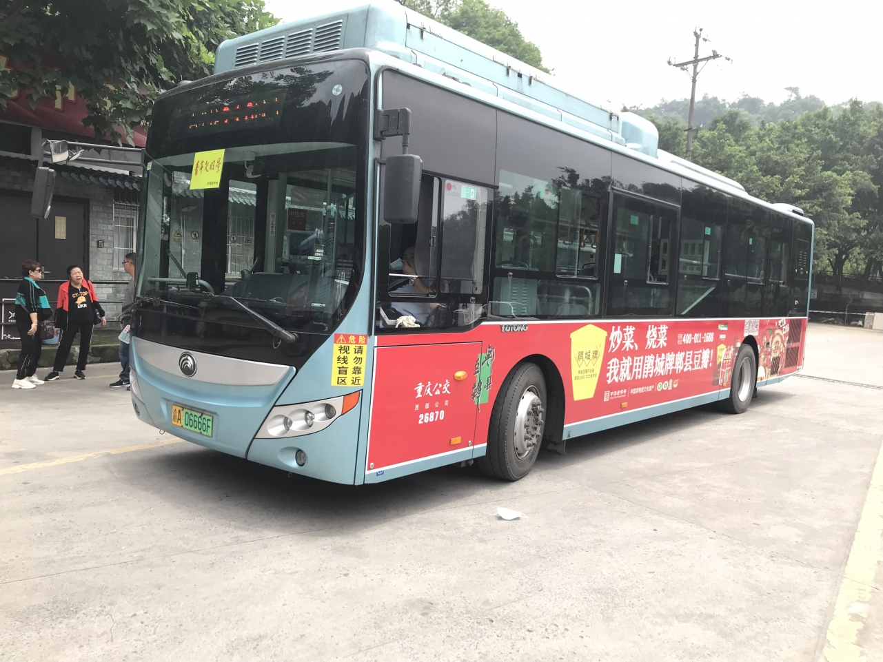 天府广场东,到了。请您依次下车,下车请注意安全。We're arriving at Tianfu Square East. Please exit the bus in order and be careful when you get off the bus. 前方到站:人民中路一段。要下车的乘客,请做好下车准备。The next stop is Mid. Renmin rd., Section 1. Please get ready to get off the bus.