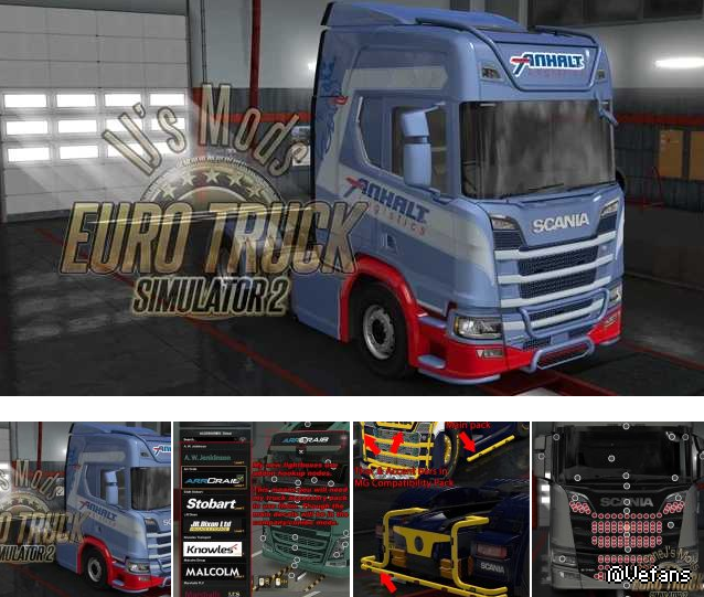 Truck Accessory Pack v16.2 1.49 ETS2 Changelogs v16.2: – New Version of Halo Lights – Renault Premium – True Painted Doorhandle – Renault Premium – Painted Front & Side Mirrors – DAF XD – Painted Intakes – DAF XD – Painted Logo – DAF XD – Painted Rear Fenders & Tops – DAF XD – Train Horn – DAF XD – Backlight Rose & UK Flag Description: This mod contains additional parts for SCS trucks. Credits Nimir-Raj