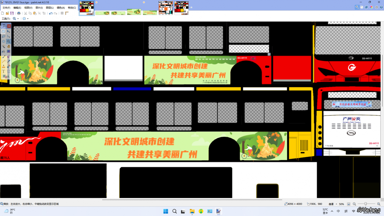 【介绍】以广州公交集团电车分公司的H111车为原型,制作的一款半包式公益广告,该车现实中跑121线及如约【版权】本人(TSK2)(七巧板底色涂装也为本人制作)