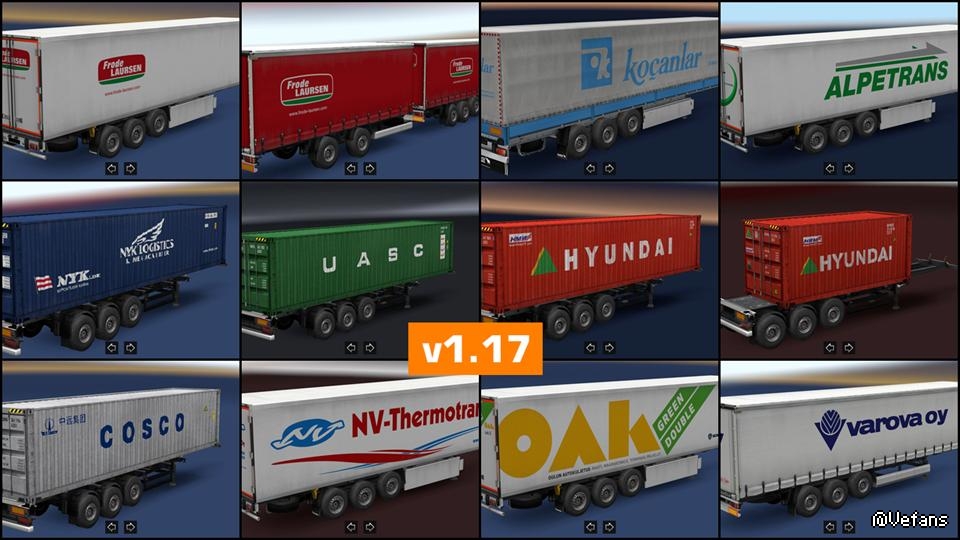 对现实生活最大的集合可能拖车增加超过650 +票房收入最高的欧洲物流和货运公司原挂车皮你的交通几乎没有性能损失。修改SCS自己的拖车。你也可以通过简单地选择你喜欢的公司定制的“可选择的”拖车。
