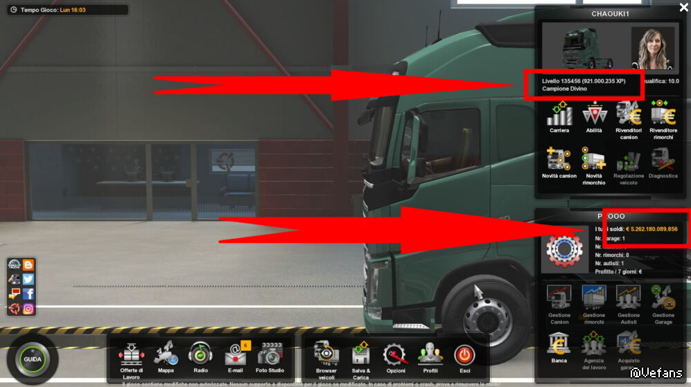 The mod adds infinite money and xp already from the first level, after the delivery of the trip.