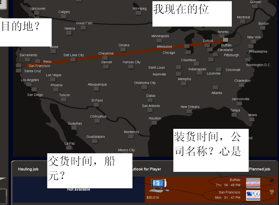 转的头的晕了,卸好了第一次货柜,想在拉个柜,可是不知道到那里,看不懂地图,版主能发给详细点的图文教程吗??拍了张地图,想在原地在拉个货柜,可是时间到了怎么没看见货柜的影子???
