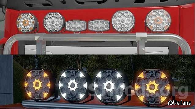 Мод добавляет кенгурятники и лайтбары с фонарями.