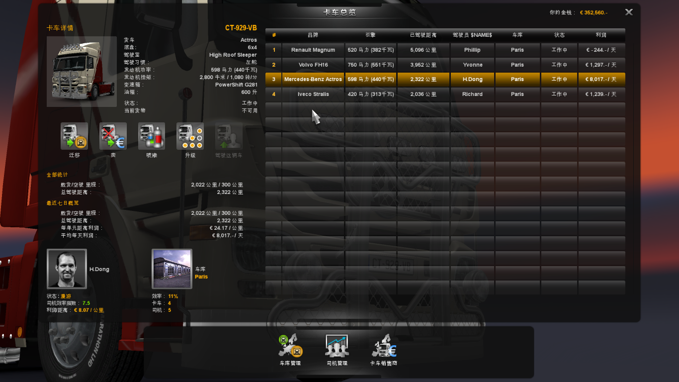 如图所示,我在安装了真是车标MOD后,进入游戏,去选择公司管理-卡车管理,点击第一和第三辆卡车都正常,没有事情,点击第二和第四辆卡车,直接如图二显示了~求大神给解决下啊