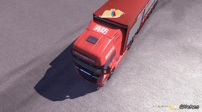 【适用版本】:本MOD欧卡2之斯堪尼亚重庆消防车头内饰加货柜,通用版本MOD