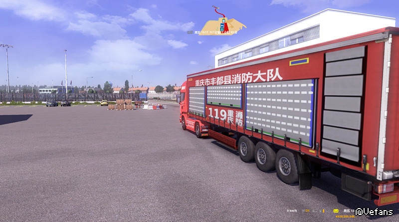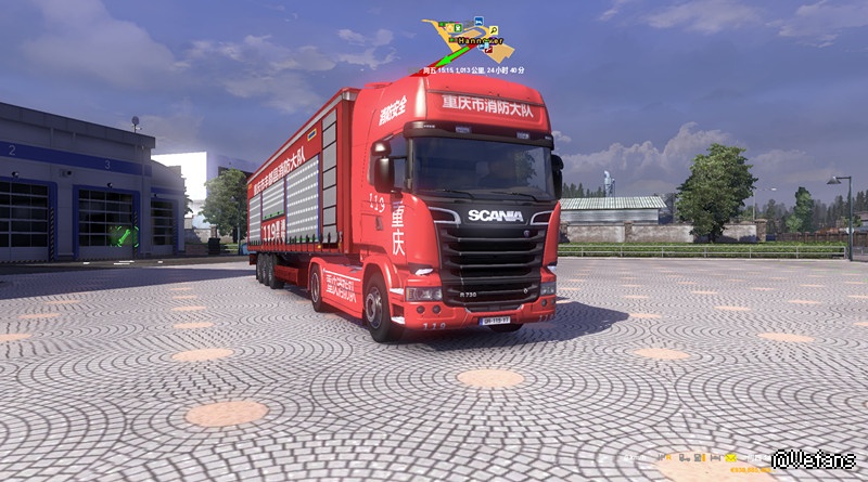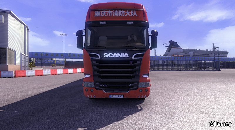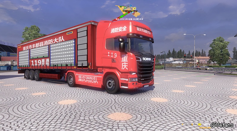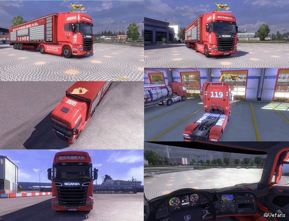 【适用版本】:本MOD欧卡2之斯堪尼亚重庆消防车头内饰加货柜,通用版本MOD