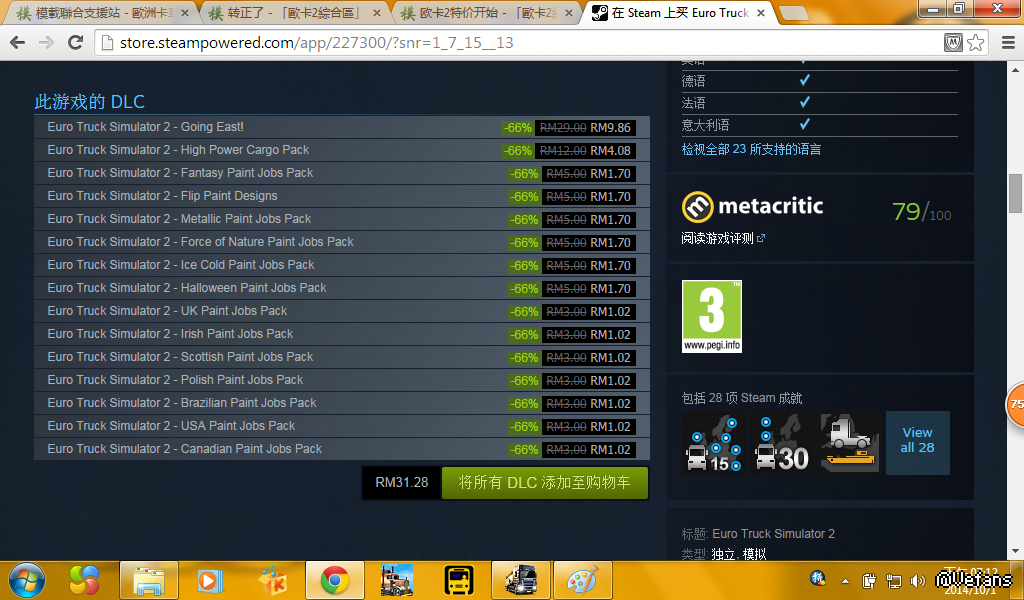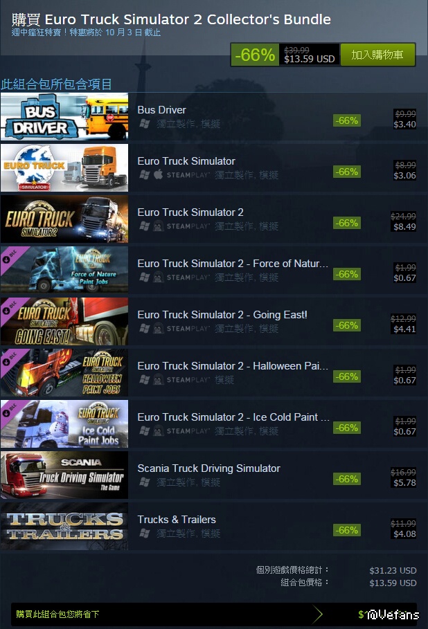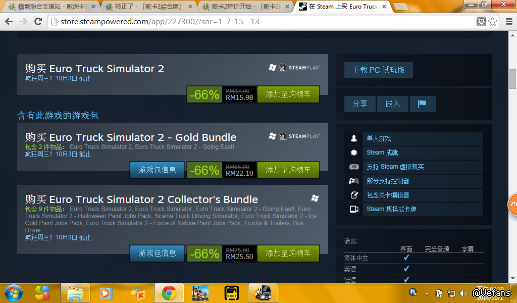 原帖由 huamin88 於 1/10/2014 03:14 發表 欧洲模拟卡车2特价活动至10月3日结束,想购买的赶紧了