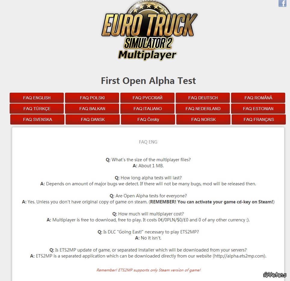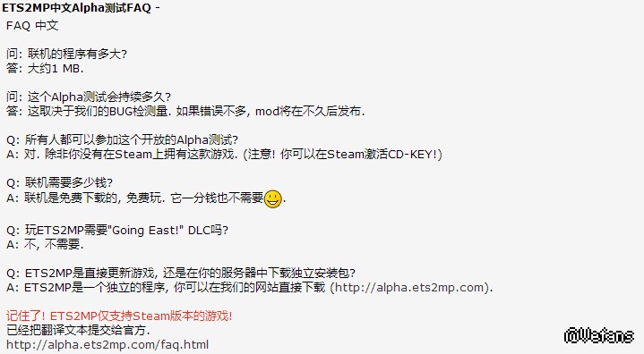 来个 ETS2MP 官网的 FAQ吧