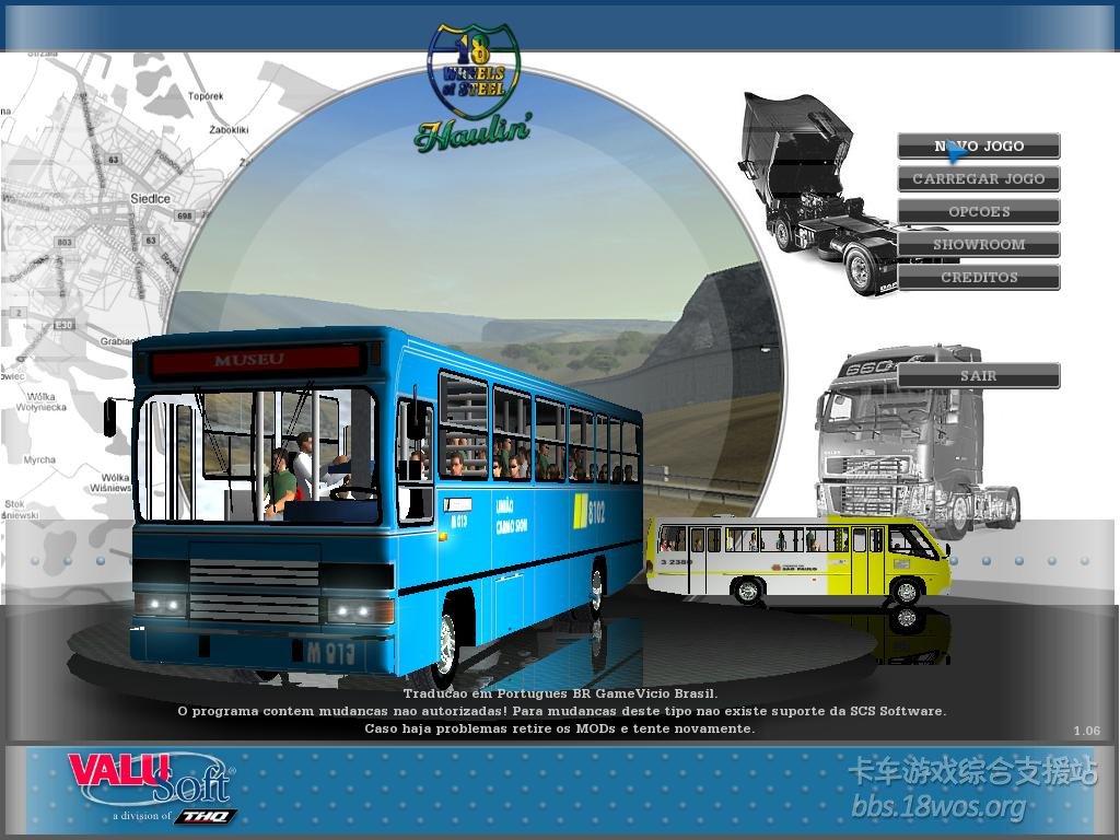 18轮卡车 (运输王)搬运能手 新巴士mod   使用加拿大-美国-墨西哥 V4地图, 有64个城市.