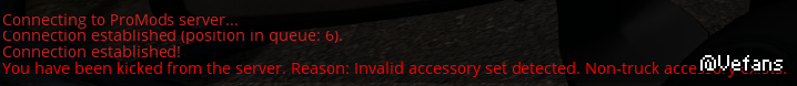 Promods联机模式,刚上线就会被踢,是少了啥吗?