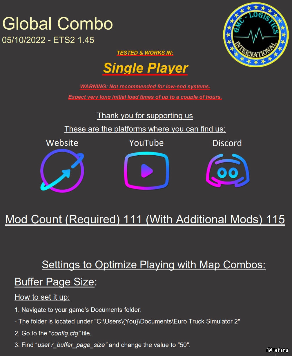 GMC于10月5日更新了适配ETS2 1.45的全球大地图组合