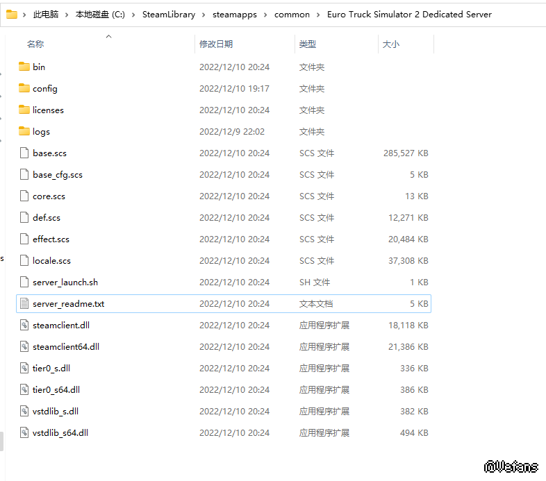 server_config.sii -包含服务器环节的描述和配置、连接端口信息、密码和主持人列表 -同时运行多个环节时,每个环节的端口和密码必须不同 -默认此文件是自动生成的