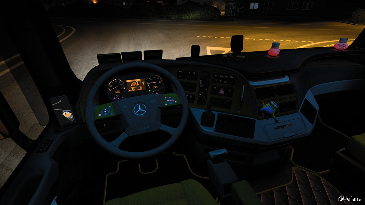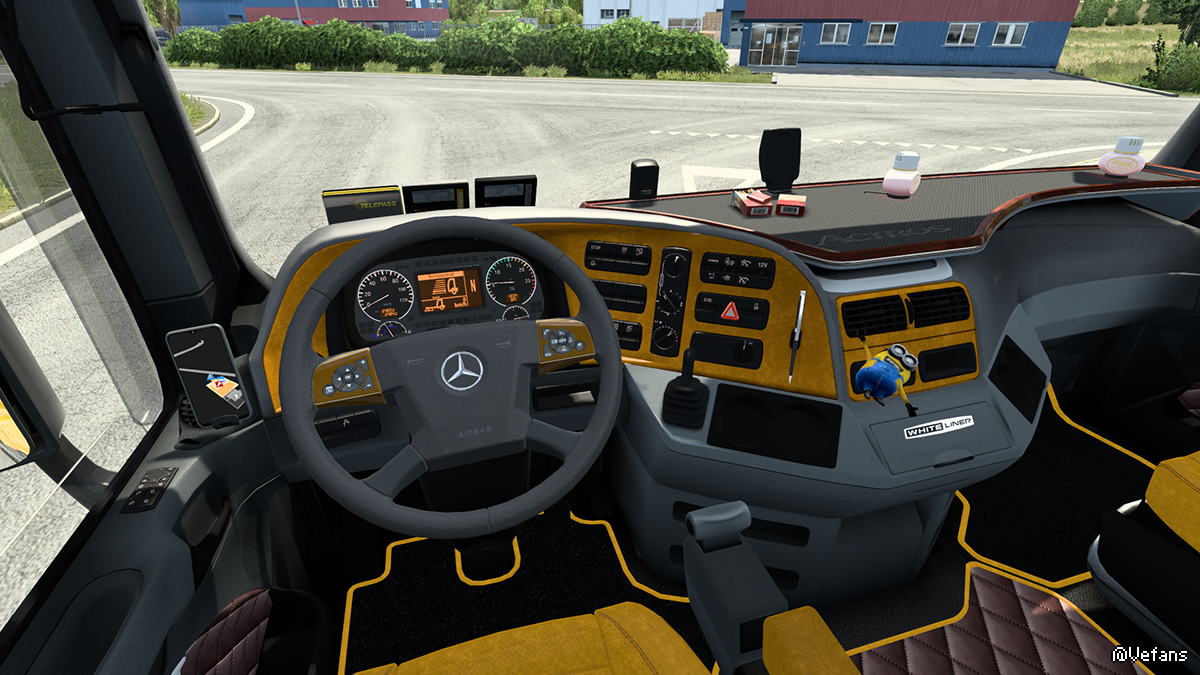 把MP3的方向盘换成MP4的就和谐很多了【用斯堪尼亚的材质怎么感觉质感相差甚远】!顺路把手机导航装到门上出风口!手机装玻璃上又太远又没有合适的地方装大的平板导航难搞了老表!