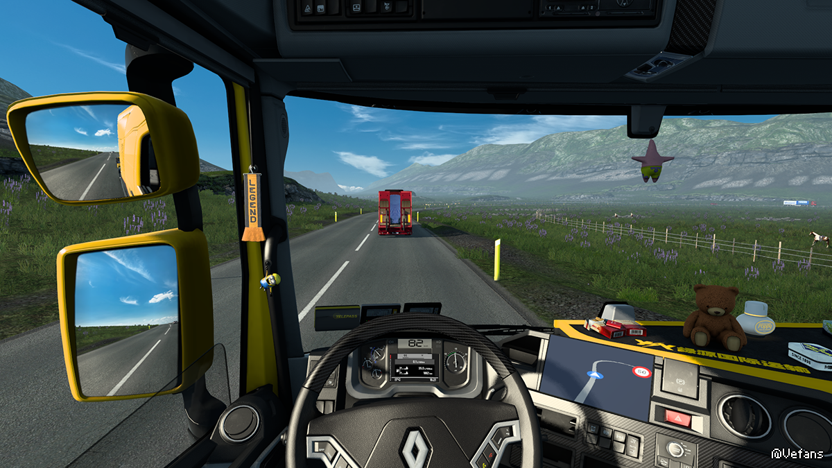 把桌子的材质换成翻毛皮,和PS中的有些差距呀!所有的SCS车型内饰的外部模型都缺失严重【全是重度精简版还有些地方错位】挂件从外部看全是悬空!我去 !