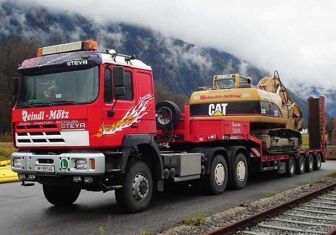 来一组斯太尔老少几代的卡车