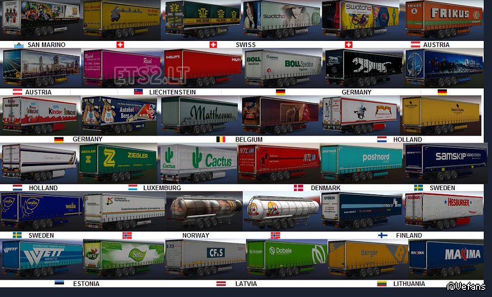 For every European Country there are minimum 2 Trailers or more: