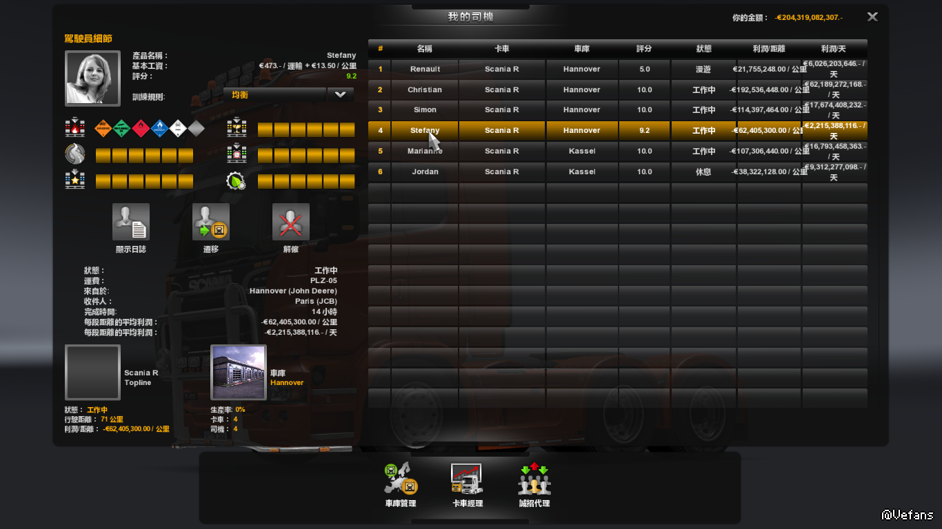 首先,我并不想恶意攻击,但我确实被这个MOD狠狠地坑了两次!司机升级的确快,但是薪酬超高!而且收入会变成负数,巨额负数!个人资产瞬间变成负债几十个亿欧元!空口无凭,请看截图。