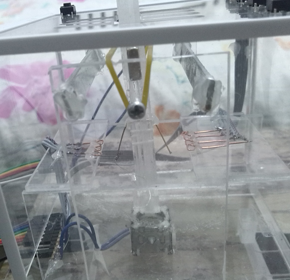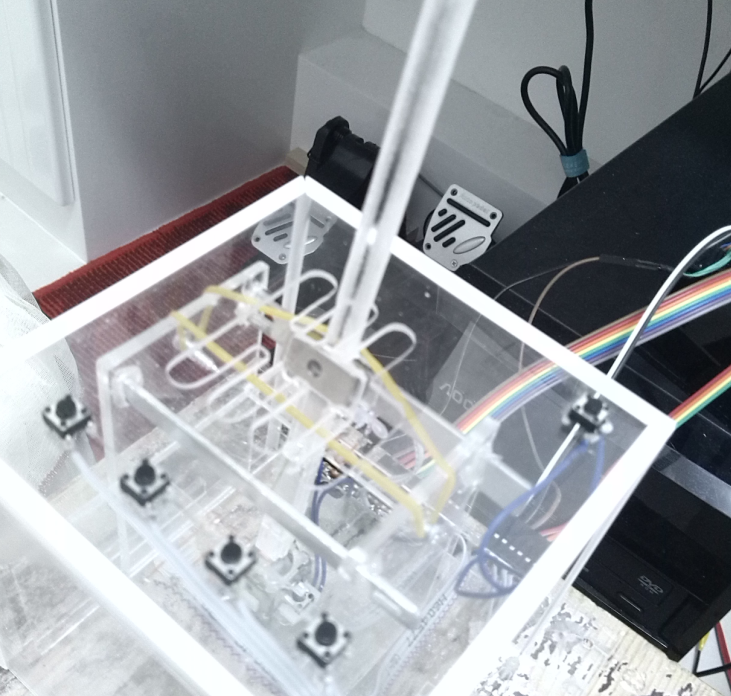 回中系統采用了一個手柄模擬搖桿的回中系統,回中力有點小,加了一個皮筋,感覺還不錯
