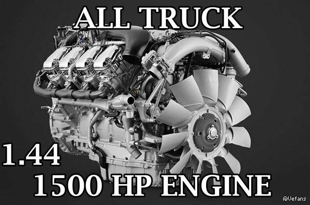 Hello there 1500 hp engine valid for all trucks. Tested in version 1.45. it works flawlessly.