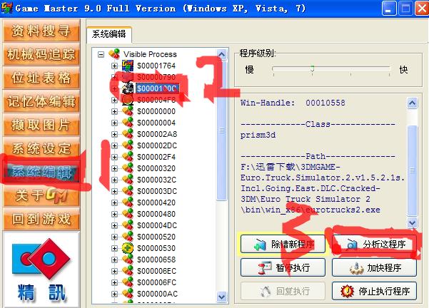 一:去下載個 GM9遊戲修改器, 首先打開GM9 然後进入遊戲 ,看你现在的金钱 后把车开到 修理厂 方便以后修改