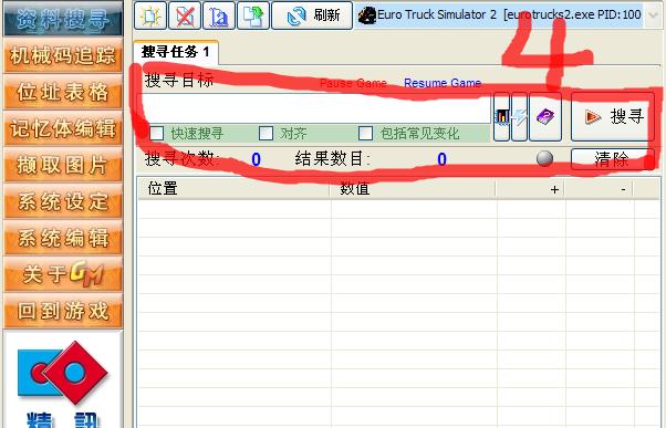 三:在搜寻目标框内输入你现有的金钱点搜寻,会出现一大堆数值,不用管它。