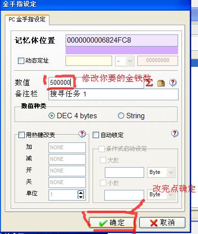 四:切回到游戏改变你现有的金钱,在修理厂里随便改装什么,钱不够就改装便宜的零件,金钱改变后切回GM9在搜寻目标框内输入你改变后的金钱点搜寻,