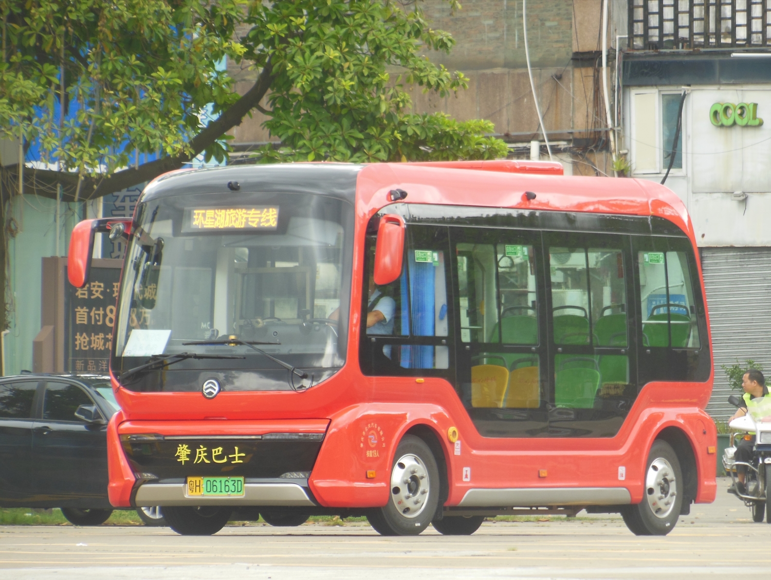 好处嘛,也有。全新报站,大面积玻璃,还是肇庆首批拥有塞拉门的公交。
