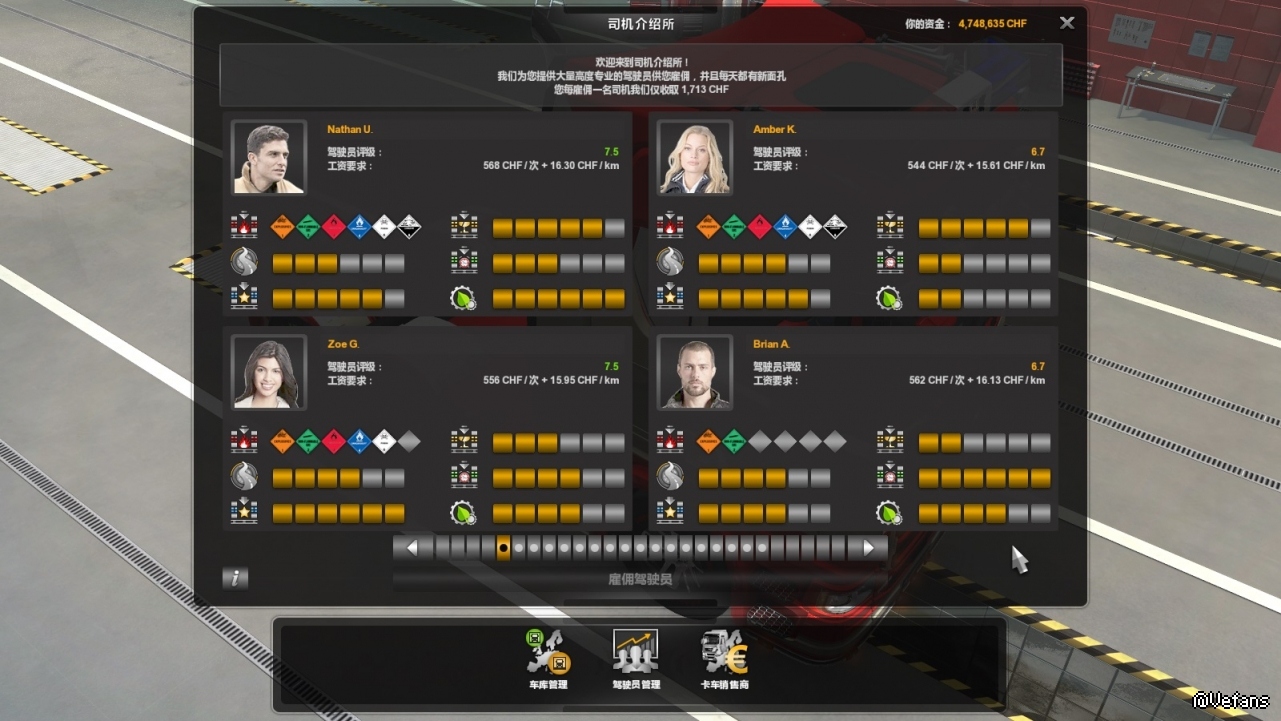 没用司机MOD之前,司机已经不够用了,用了这个MOD之后,又可以雇佣司机干活了,好像是多了600来个司机,这样我的车库的车辆又排上用场了