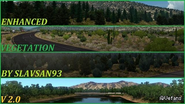 This mod replaces textures for vegetation around the map of ATS. If you like taking cool pictures and want to take a fresh look at the world of ATS, then this mod is for you! All vegetation textures have been sharpened and saturated, plus a new texture for a tree model.