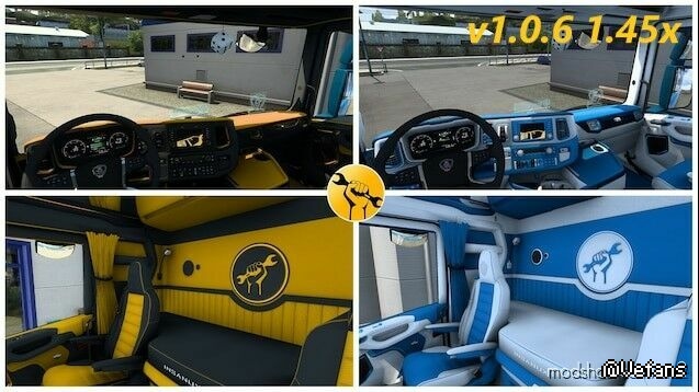 Insanux 斯堪尼亚 NG 2016 EU 定制内饰 橙色和黑色,蓝色和白色 SP Interior Mod,工作於 SCSMP 补丁说明:1.06 更新点: 仪表板修复 作者:卡尔