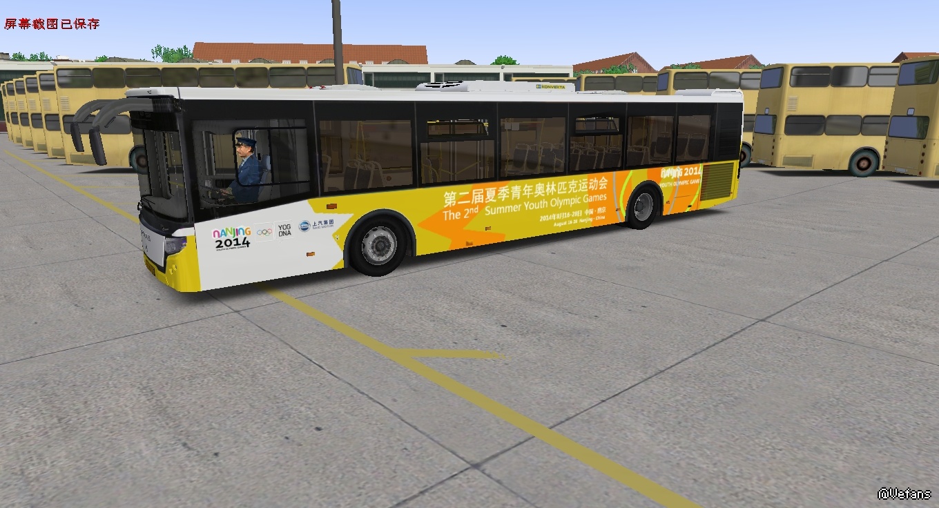 【介绍】南京青奥会,上汽赞助公交车涂装,有黄、蓝二色。原车SWB6127N8(真车图片请另搜索)。游戏中运用车型LiAZ 5292.30 2013\